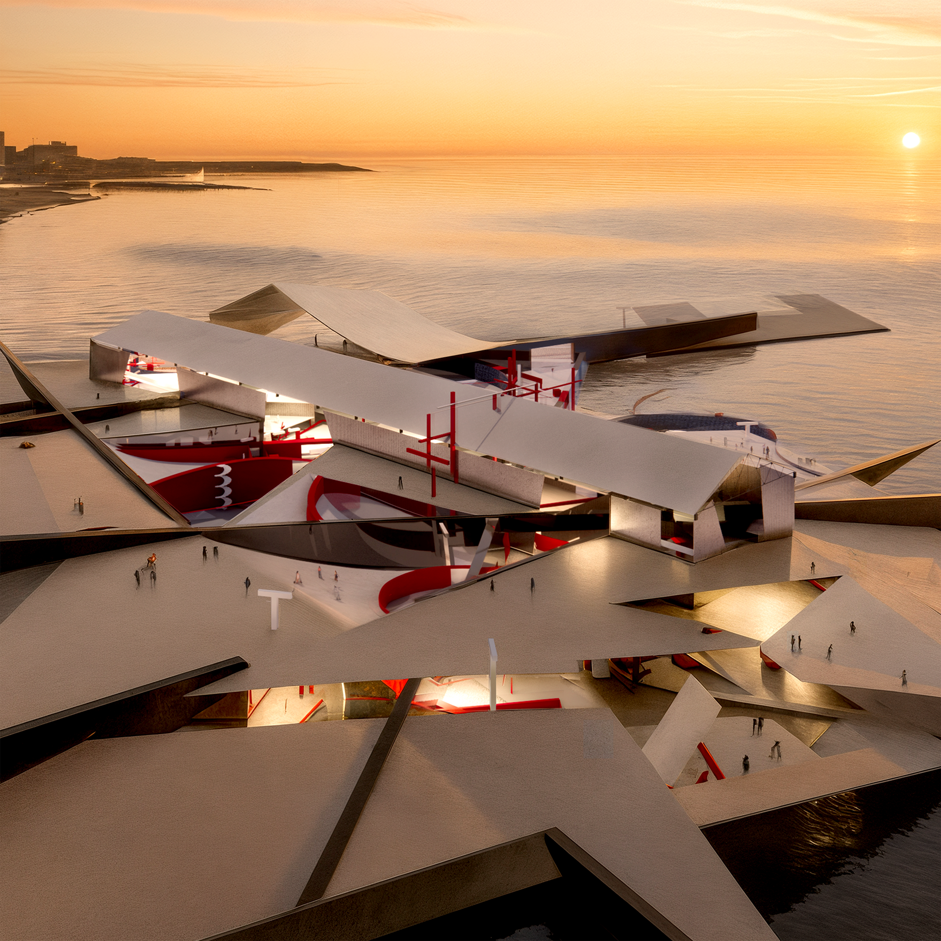 It starts from the superimposed objects in 2D drawings, which create unexpected "new" objects, to the 3D dimensionalization of paper physical models. This design aims to activate this historic district with a combination of a new shoreline landscape and several contextual machines, which could be used to hold diverse cultural events at the same time serve as shelters for homeless people. By only using the method of cutting and folding, a dynamic in-between space was discovered to form an earth landscape work.