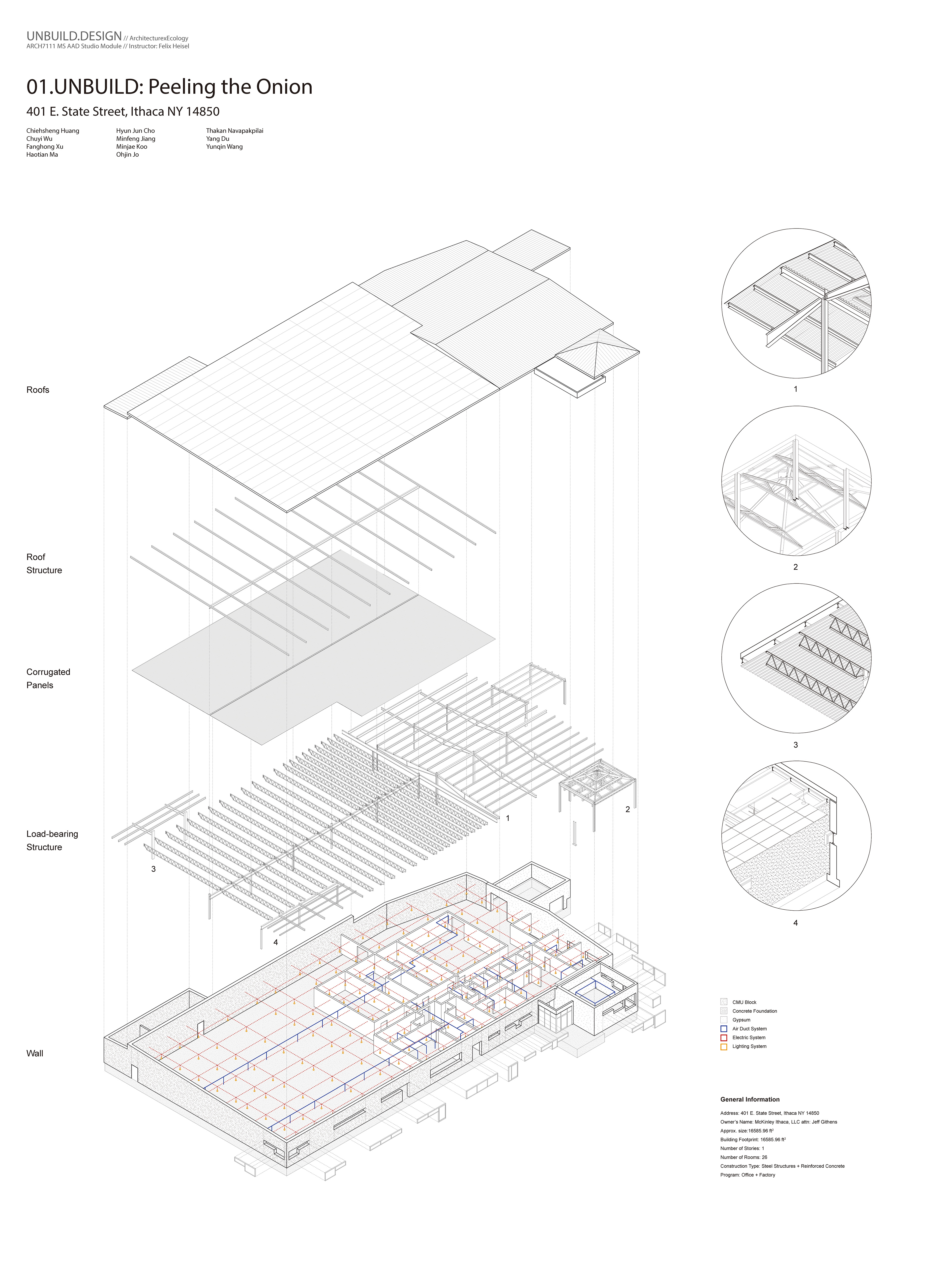 In the building at 401 E. State Street, we found key materials listed above for further investigation as they show great potentials to be recycled and reused.