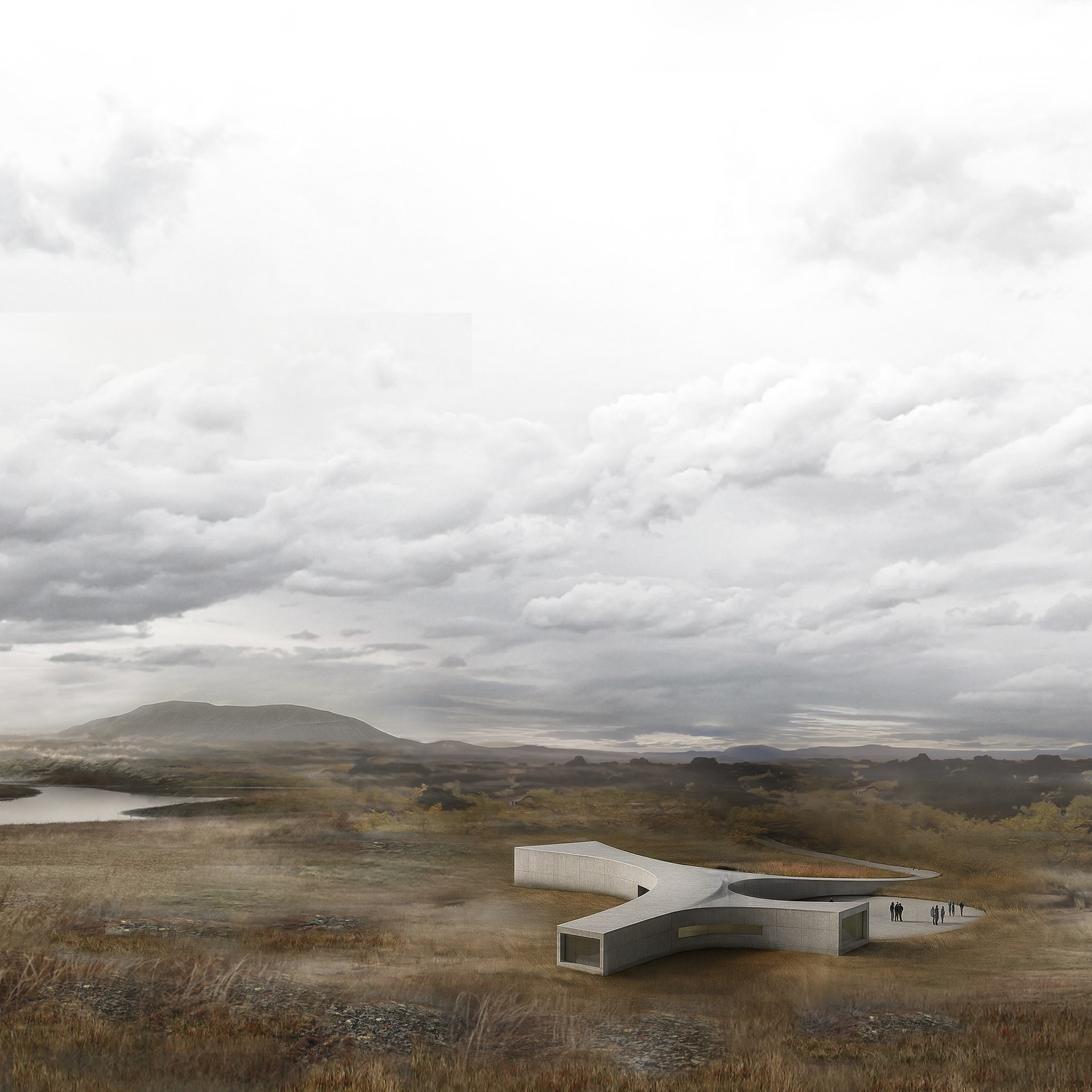 The Dimmuborgir has twisted mass of coagulated Black rock that forms the shape of sinister-looking towers and castles. The Place translates roughly to mean dark castles, accompany Hvefjaff Volcano and Myvatn Lake becoming the three super excellent attractions in this area. By using the strategy of the relationship between the visual guidance and walls, The visitor center offers panoramic views of the surroundings, which also blending in the dark, earthy tones by using solid, streamlined concrete outer layer.